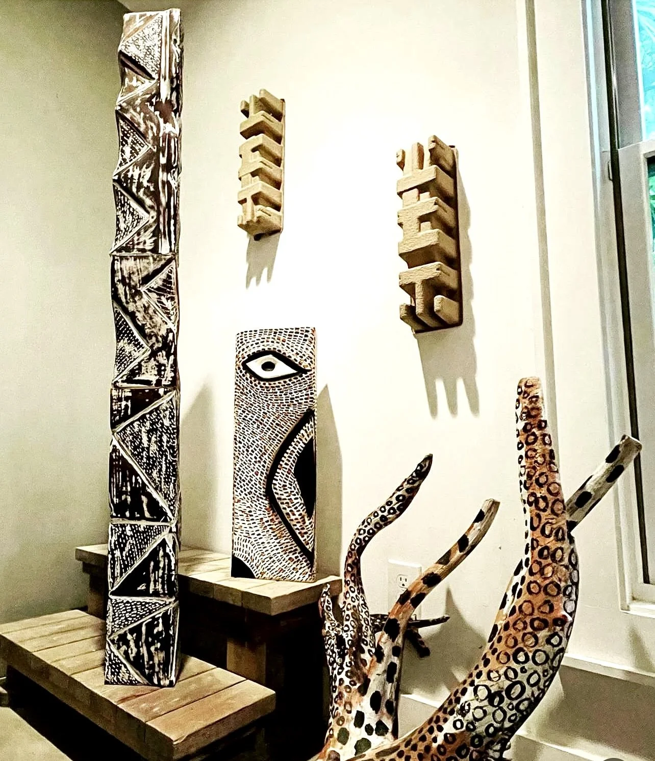 Whether it’s a wash of acrylic and pastel or a hand-carved wooden form rising skyward, Nathalie’s work doesn’t shout—it resonates. It asks to be felt before it’s understood. Her pieces carry the depth of mythology with the immediacy of personal memory—works that feel both timeless and intensely human.